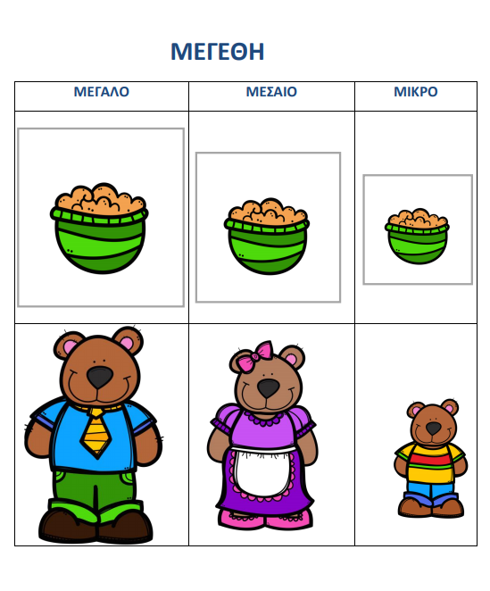 μέσα από το παραμύθι ''Η Χρυσομαλλούσα και οι 3 αρκούδες''